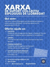 La xarxa de suport col·lectiu d'Esplugues som veïnes d'Esplugues que voluntàriament ajudem a trobar solucions individuals i col·lectives per a les veïnes d'Esplugues davant la crisi sanitària generada per la Covid-19, i la conseqüent crisi econòmica.