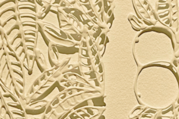 “La creación” from the Komorebi series (a Japanese word meaning sunbeams filtering through the leaves of trees) recreates the foliage of an orange tree."
