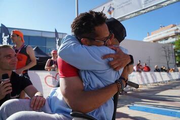 Dia de la cursa popular de Sant Joan de Déu. L’Oliver de voluntari per a que Bernard, amb mobilitat reduïda, pugui participar a la cursa i gaudir d’una cursa amb alegria.