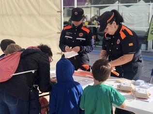 Un petit gest, evita grans disgustos. Dos voluntàries de protecció civil fent entrega de les polseres, als més menuts, per tal de prevenir una pèrdua.